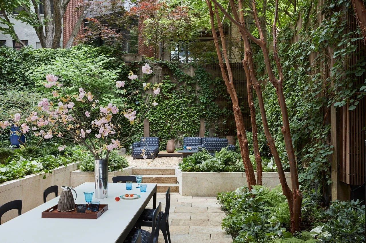 This 5-story double townhouse in Greenwich Village, once a boarding school for girls, was converted into a single family house. The extensive home is now used for charity and art events for which the three level expansive garden is the center, an urban oasis with levels for dining, lounging and entertainment. Project completed by terrain-nyc landscape architecture PC. Maggie was the senior Landscape Architect on the project.